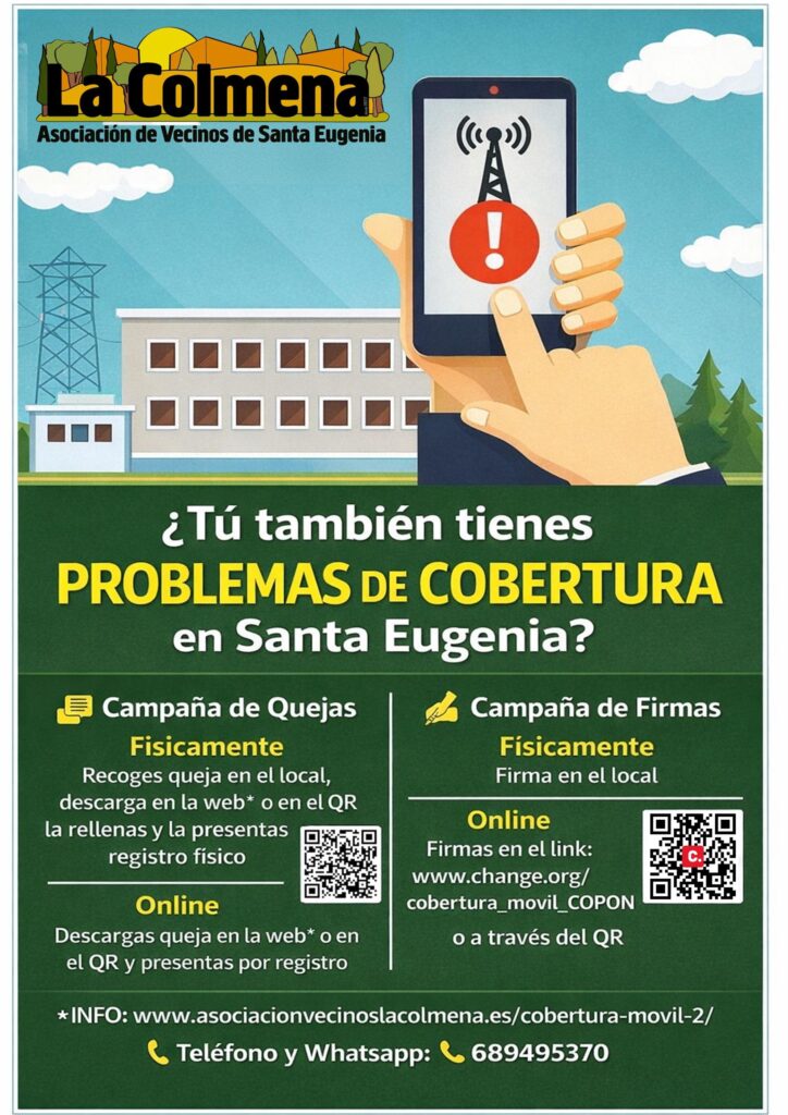 Esta campaña demuestra que la organización vecinal es clave para defender nuestros derechos. Cuantas más personas nos unamos, más fuerza tendremos para poder solucionar los problemas que vamos teniendo entre ellos la deficiente cobertura móvil y que sea esta fiable y segura.