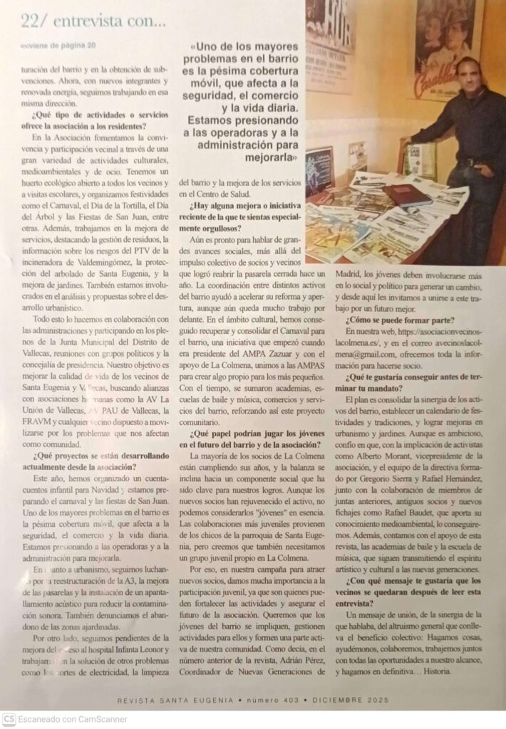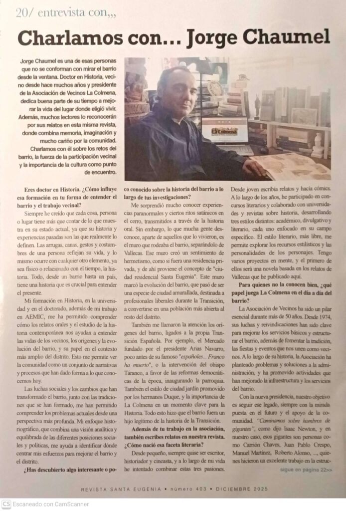 Cuando tengamos link de la entrevista en la web de la Revista de Santa Eugenia, lo pondremos por aquí para que podáis disfrutar del articulo con mayor calidad.