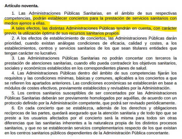 Dentro de esta Ley, tenemos que destacar el artículo 90 que abría la puerta, aunque fuera como un caso excepcional, a la privatización de servicios sanitarios. En la práctica lo que debía ser una excepción, se fue generalizando.