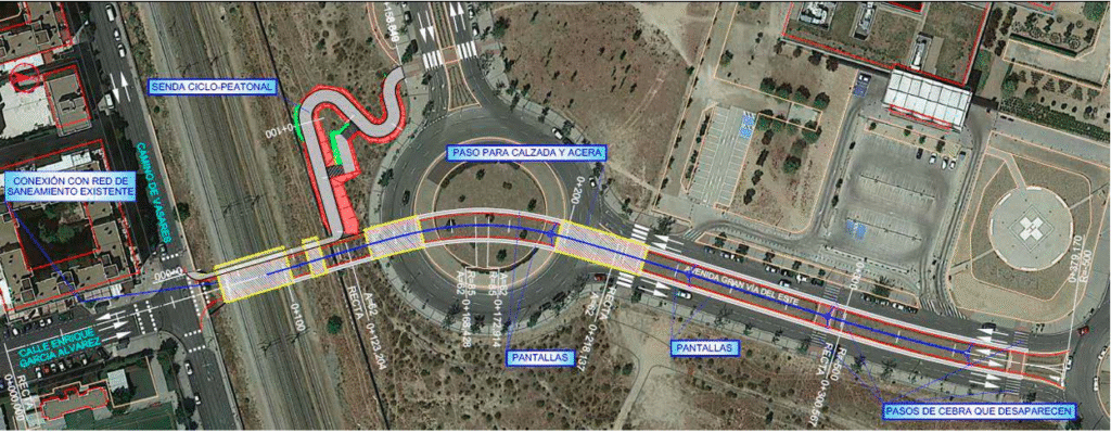 Vista aérea del paso al hospital desde Enrique García Álvarez, sacado del plan de Viabilidad.