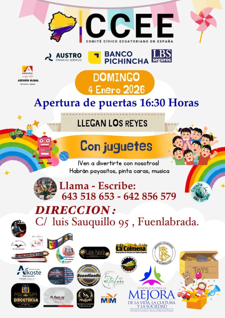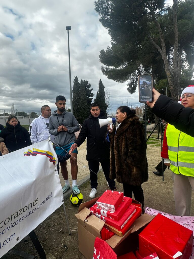 El evento está organizado por el Comité Cívico Ecuatoriano de España (CCEE) la AV La Colmena ha tenido una participación testimonial, que ha consistido en poner en contacto La comunidad educativa del IES Antares de Rivas y el Comité Cívico Ecuatoriano de España, lo que ha permitido entregar los juguetes que han sido recogidos de forma solidaria en el Instituto. Gracias a esta colaboración, los juguetes han sido posteriormente repartidos en Pan Bendito y en otros barrios, llegando a familias y menores que más lo necesitaban.